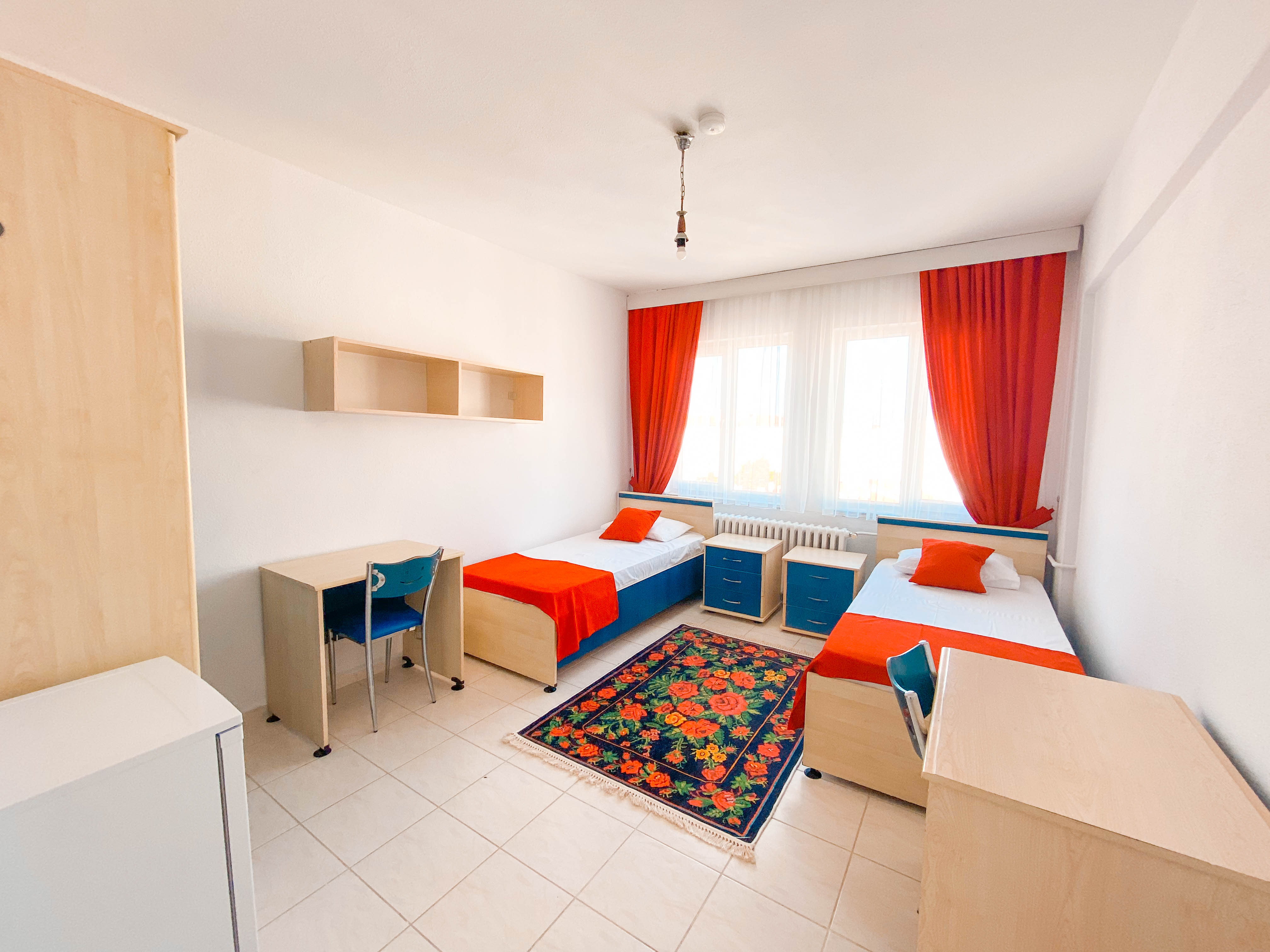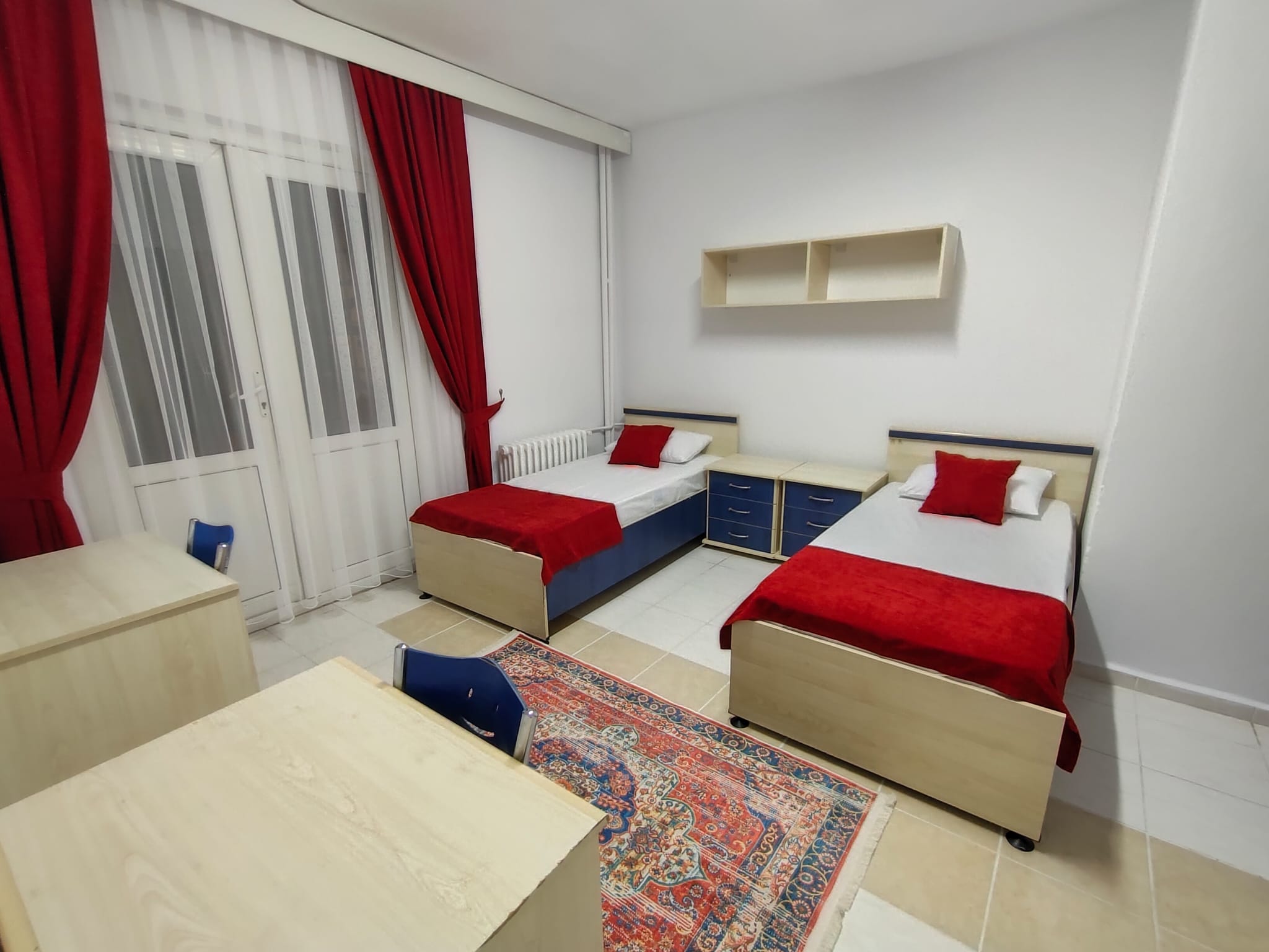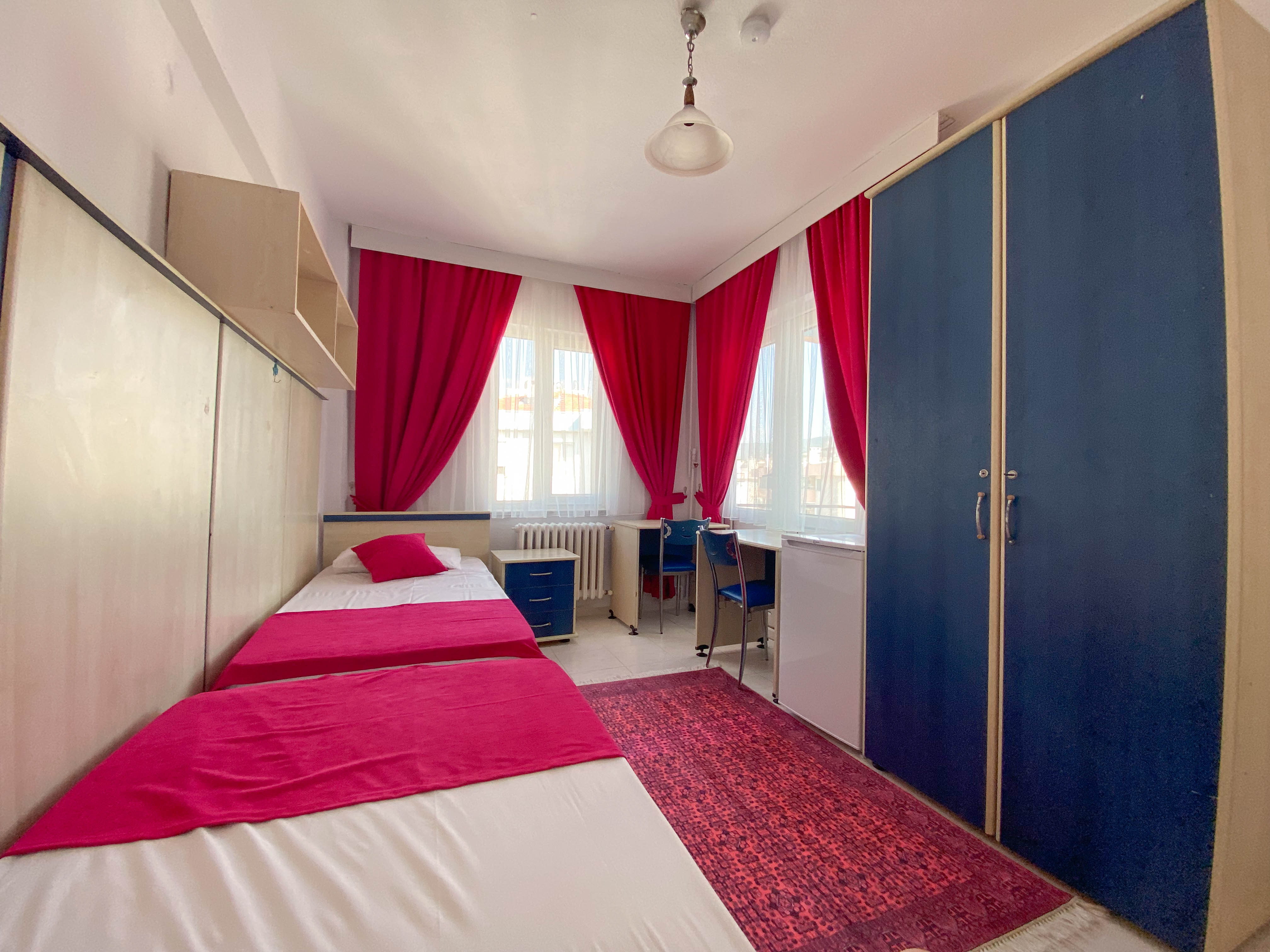 Odalarımız 16m2 Olup Geniş ve Ferah Odalardır. İçerisinde Çalışma Masası, Kitaplık, Komidin, Çift Kişilik Dolap ve Mini Buzdolabı Bulunmaktadır .