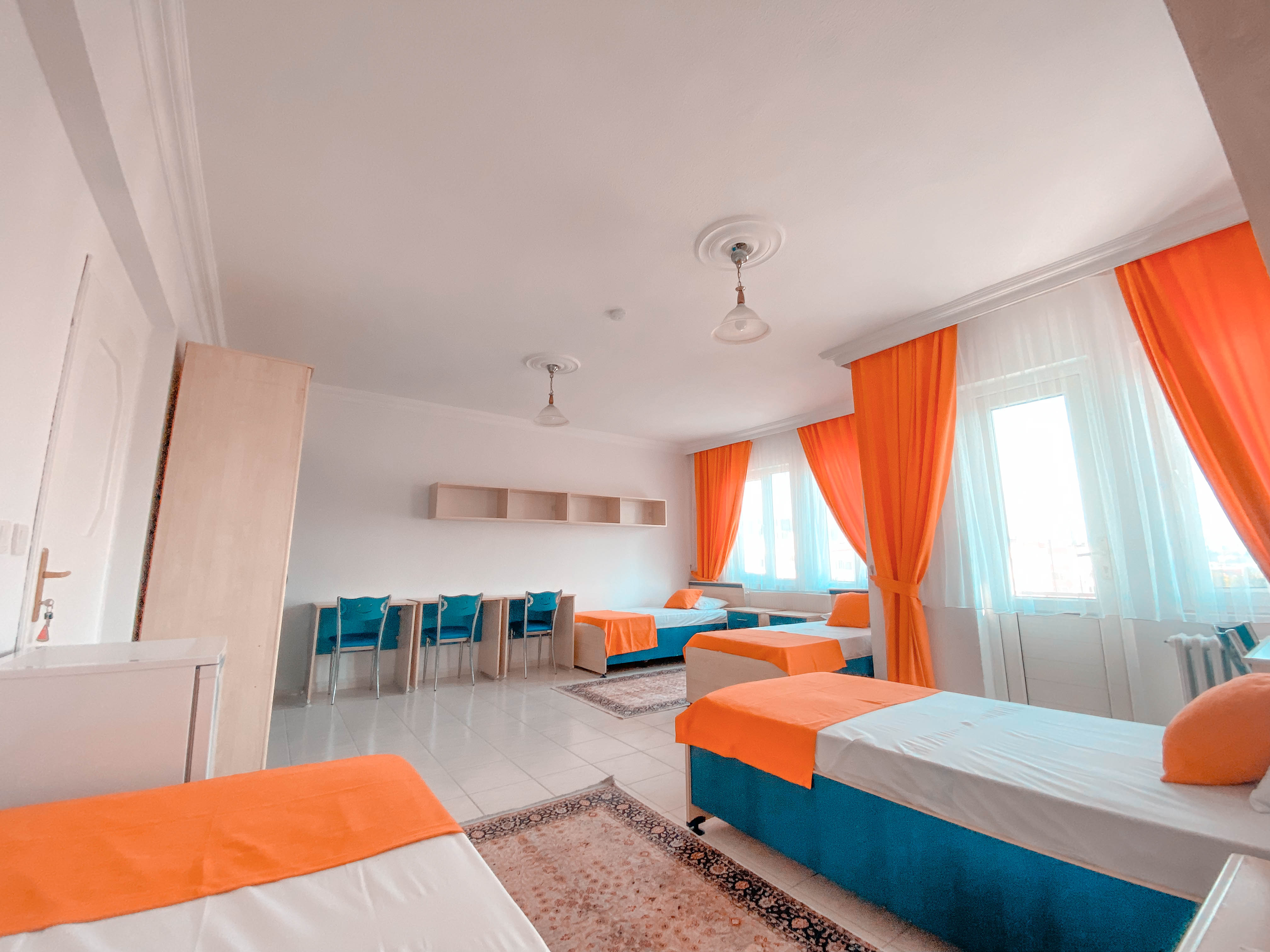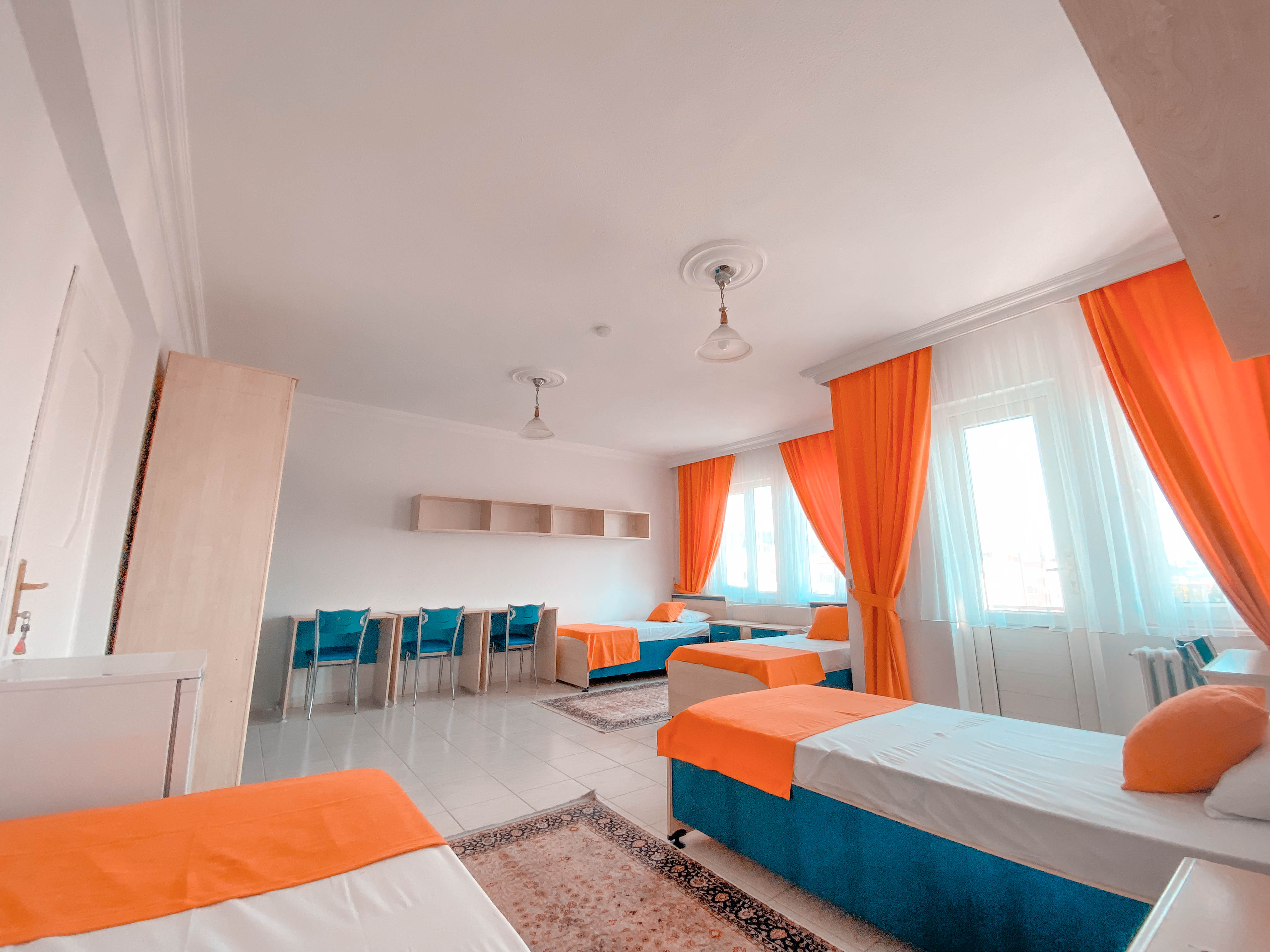 Odalarımız standart oda olup 26m2 Olup geniş ve ferah odalardır. İçerisinde çalışma masası, kitaplık , komidin, dört kişilik dolap ve mini buzdolabı bulunmaktadır .
